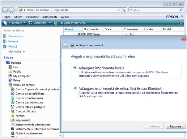Se executa urmatorii pasi ,printre care alegerea numelui imprimantei si daca