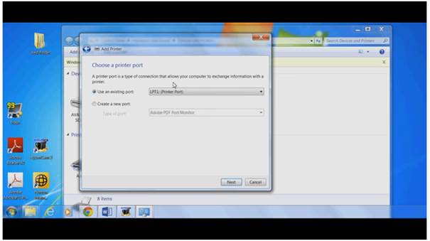 In fereastra urmatoare se alege portul pentru imprimanta.Se selecteaza butonulUse