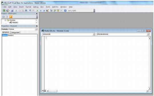Īn registrul de lucru activ este inserată o foaie cu numele implicit Module. Este o foaie de lucru Visual Basic şi diferă de foile de calcul atāt prin şi prin comenzile din bara de meniuri.