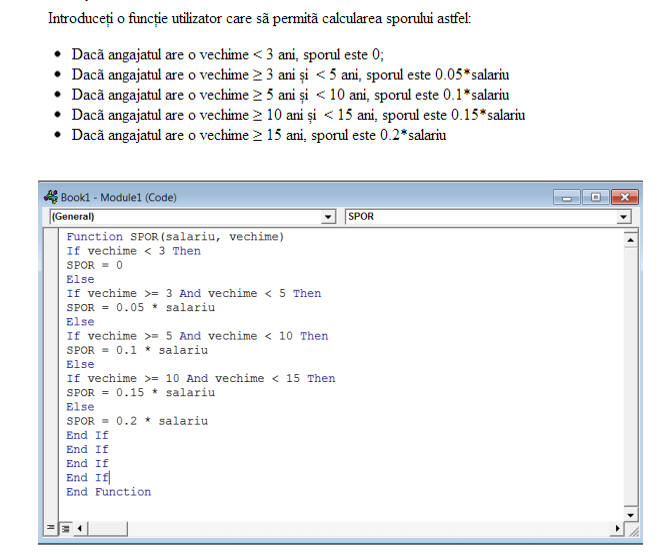 Funcţii utilizate pānă īn prezent īn Microsoft Excel sunt funcţii predefinite. Se pot defini şi funcţii create de utilizator. Aceste funcţii se numesc funcţii utilizator.