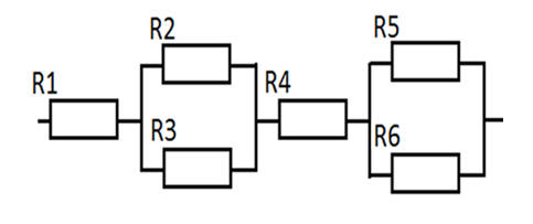 Sã se calculeze rezistenţa echivalentã pentru circuitul din figurã stiind cã fiecare rezistenţã are valoarea de 2Ω.
