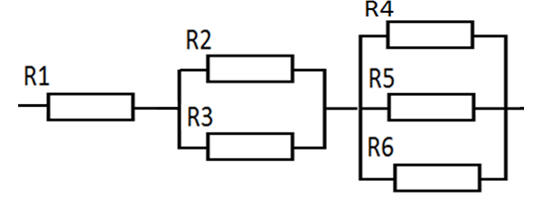 Sã se calculeze rezistenţa echivalentã pentru circuitul din figură stiind că fiecare rezistenţa are valoarea de 2 Ω.